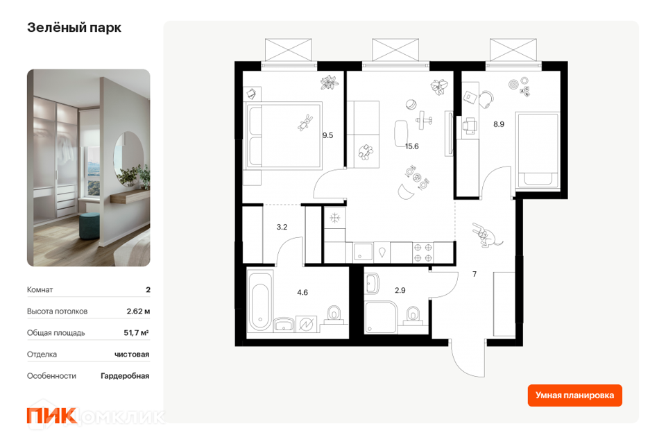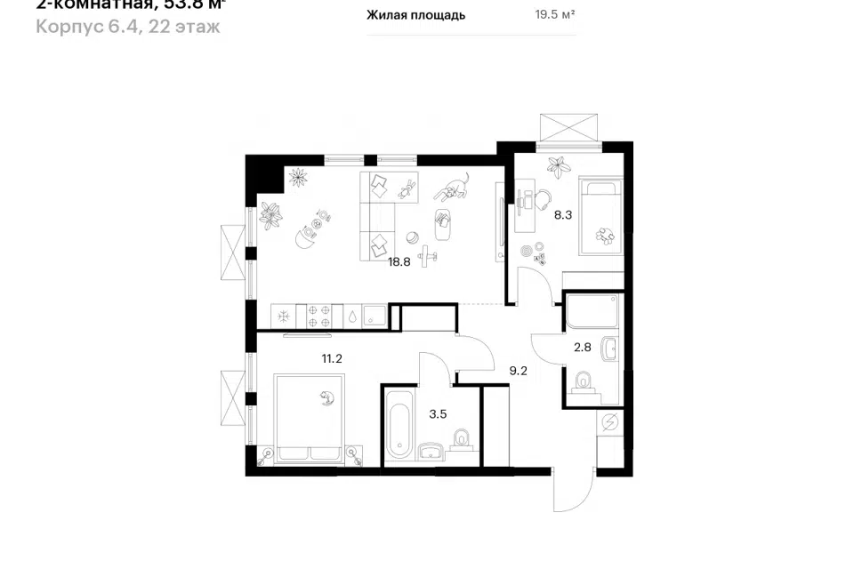 2-комн. кв., от 53.8 м², 17-25 этажи