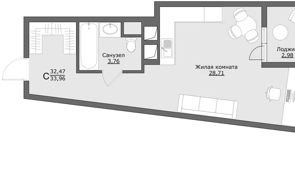 Студия, 33.96 м², 3/9 этаж
