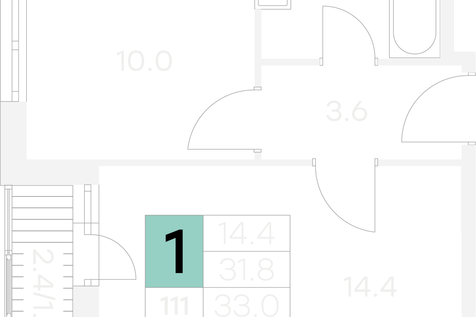 1-комн. кв., от 31.9 м², 1-9 этажи