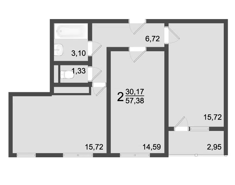 2-комн. кв., от 57.38 м², 2-3 этажи