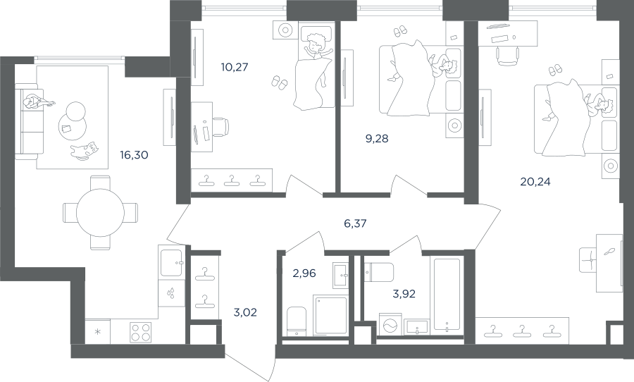 3-комн. кв., от 65.7 м², 18-27 этажи