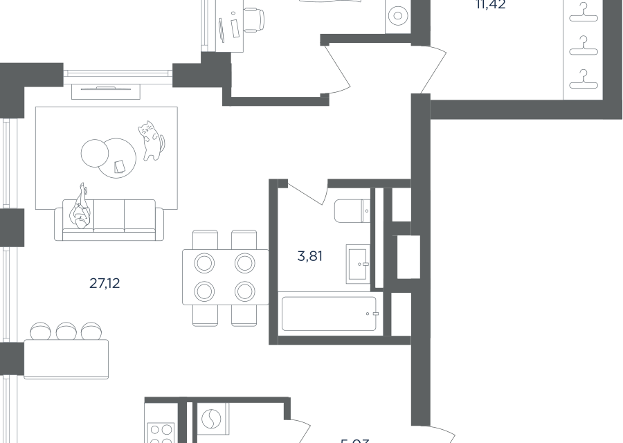 2-комн. кв., 59.47 м², 12/28 этаж