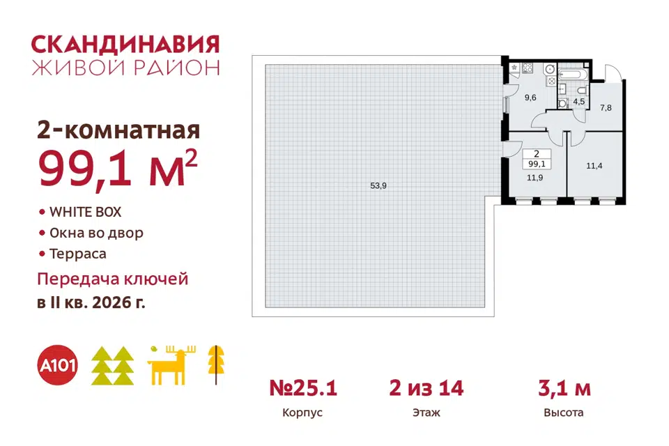 2-комн. кв., 99.1 м², 2/14 этаж