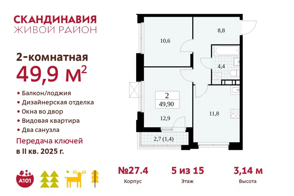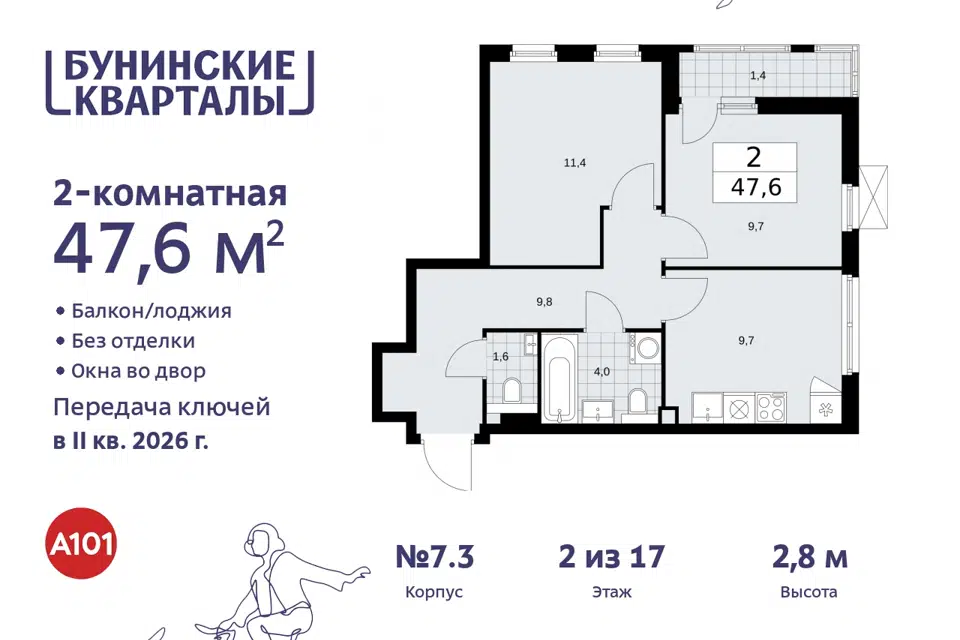2-комн. кв., от 48.6 м², 2-11 этажи