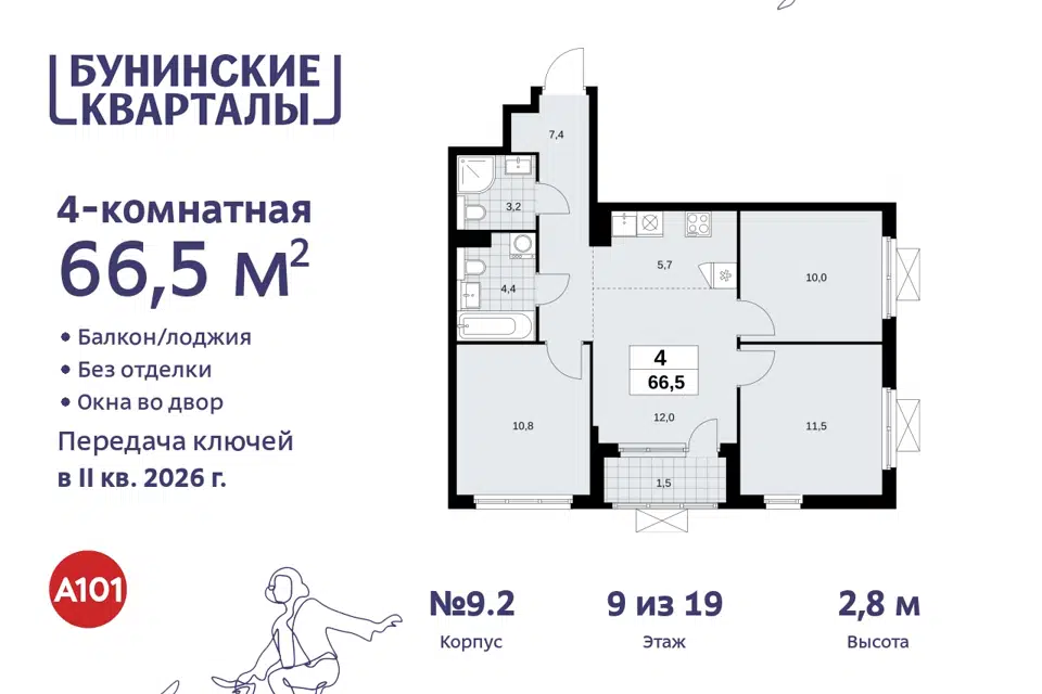 4-комн. кв., 66.5 м², 14/19 этаж