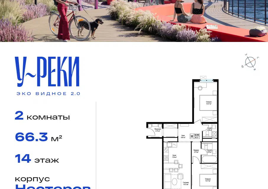 2-комн. кв., 66.4 м², 17/31 этаж