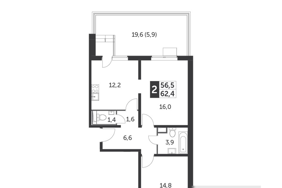 2-комн. кв., от 55.4 м², 2-17 этажи
