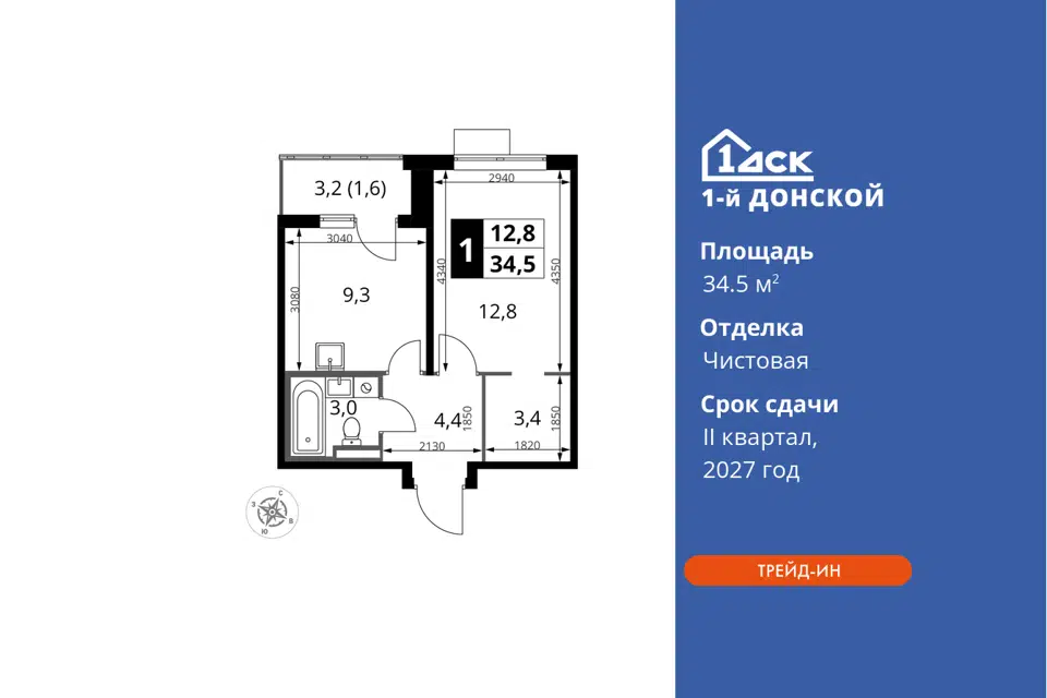 1-комн. кв., от 31.9 м², 4-16 этажи