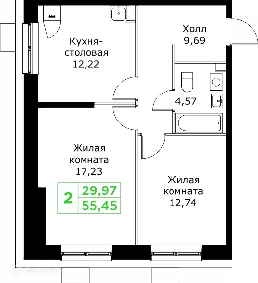 2-комн. кв., от 43.17 м², 2-24 этажи