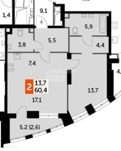 2-комн. кв., 60.4 м², 5/45 этаж