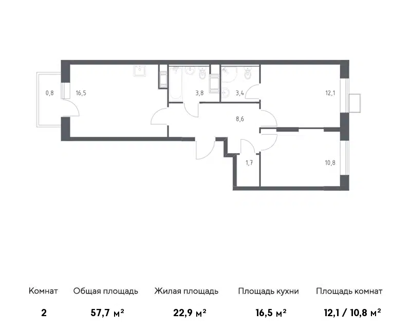 2-комн. кв., от 59.1 м², 2-14 этажи