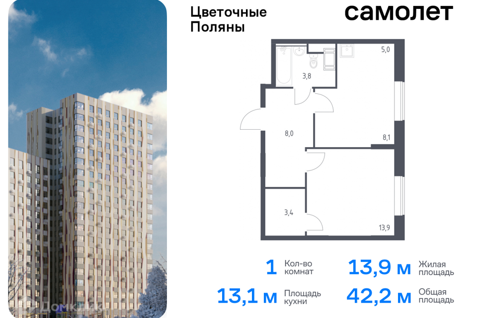 1-комн. кв., от 40.2 м², 9-13 этажи