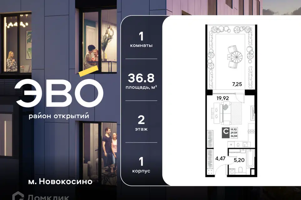 Студия, от 36.84 м², 2/25 этаж