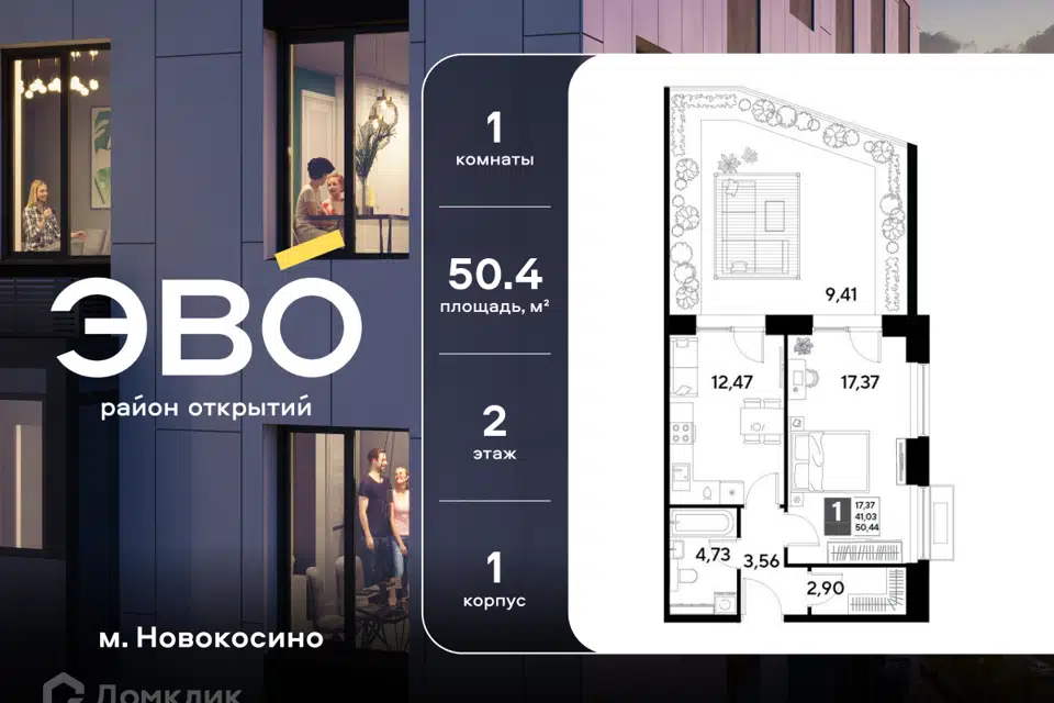 1-комн. кв., 39.52 м², 7/25 этаж