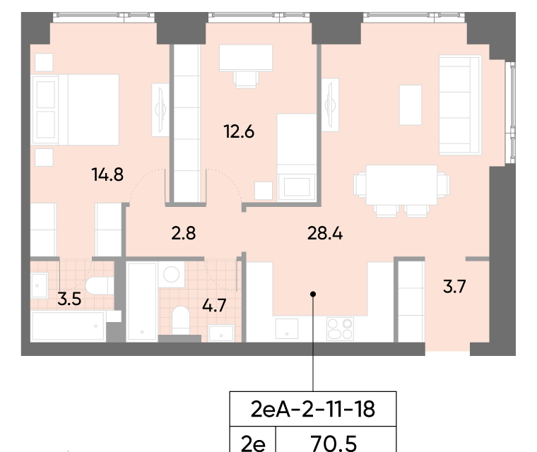 2-комн. кв., от 70.5 м², 13-25 этажи