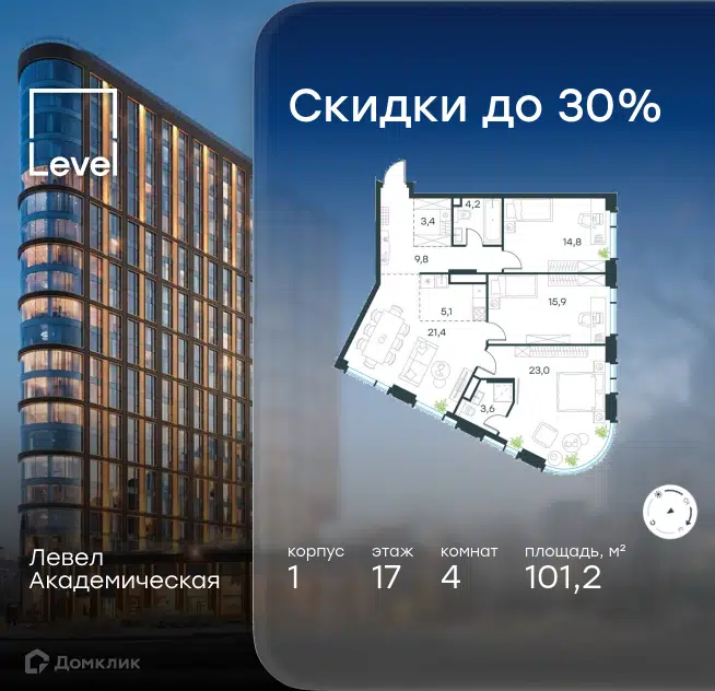4-комн. кв., от 101.2 м², 2-17 этажи
