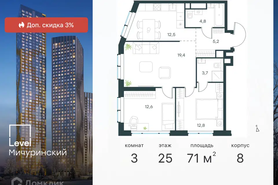 3-комн. кв., от 62.7 м², 5-27 этажи