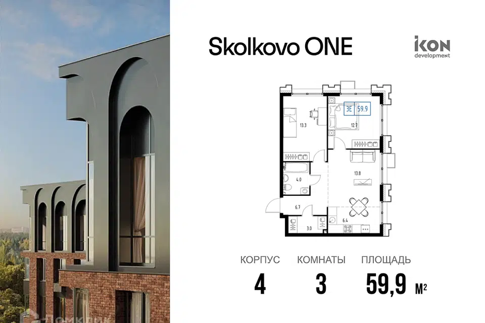 3-комн. кв., от 59.9 м², 3-7 этажи
