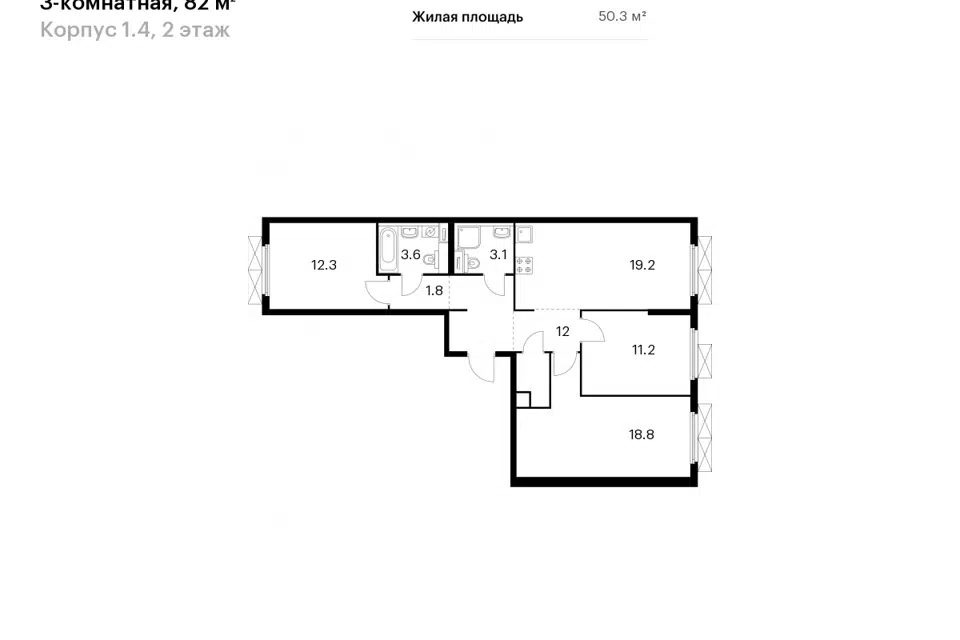 3-комн. кв., 82 м², 2/17 этаж