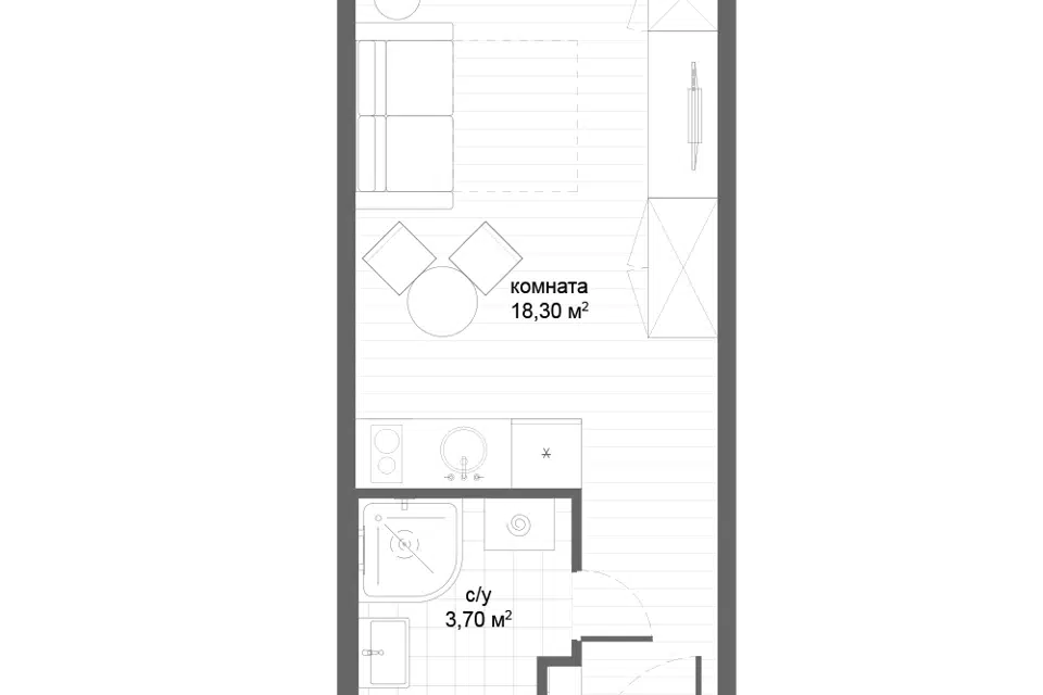 Студия, 22 м², 12/21 этаж