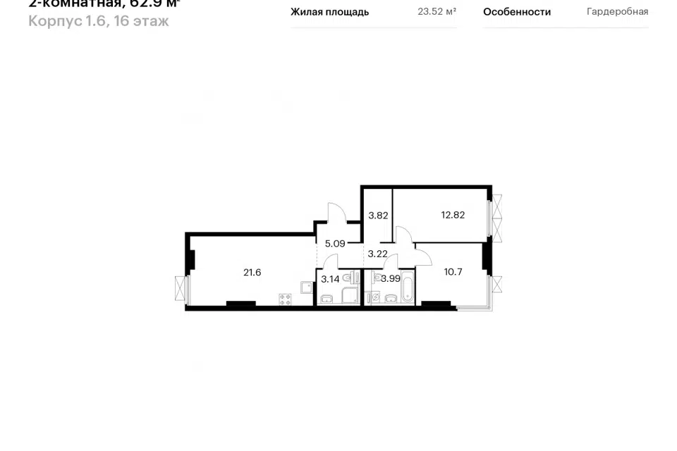 2-комн. кв., от 62.9 м², 2/17 этаж