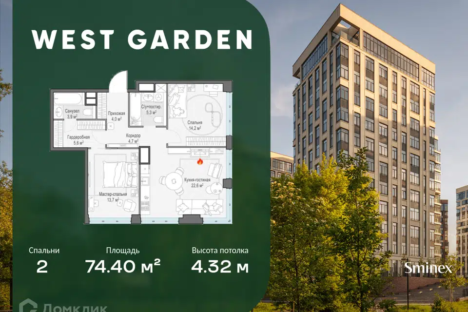 2-комн. кв., от 69.6 м², 12-14 этажи