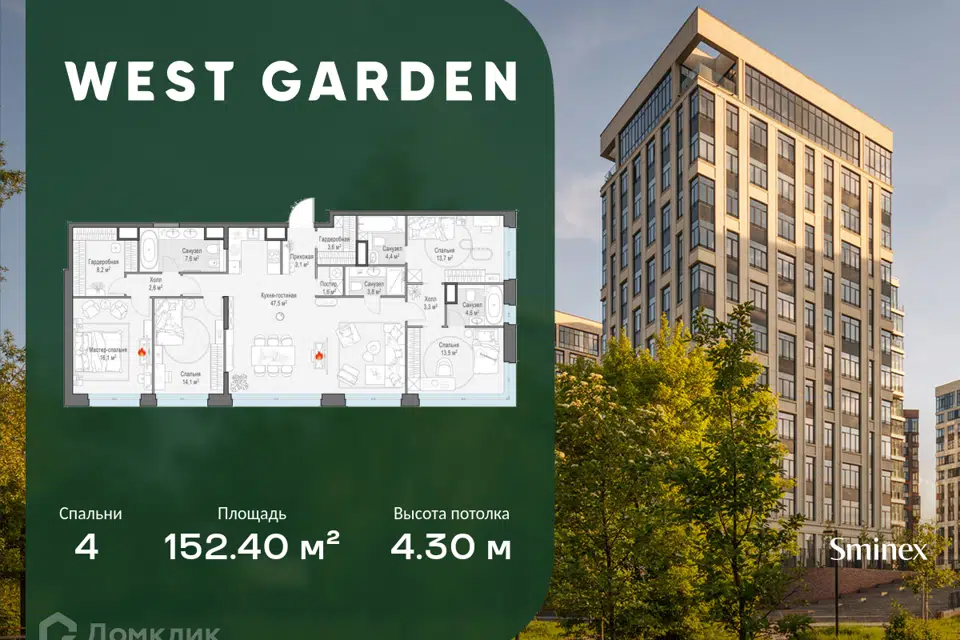 4-комн. кв., от 141.3 м², 14/14 этаж