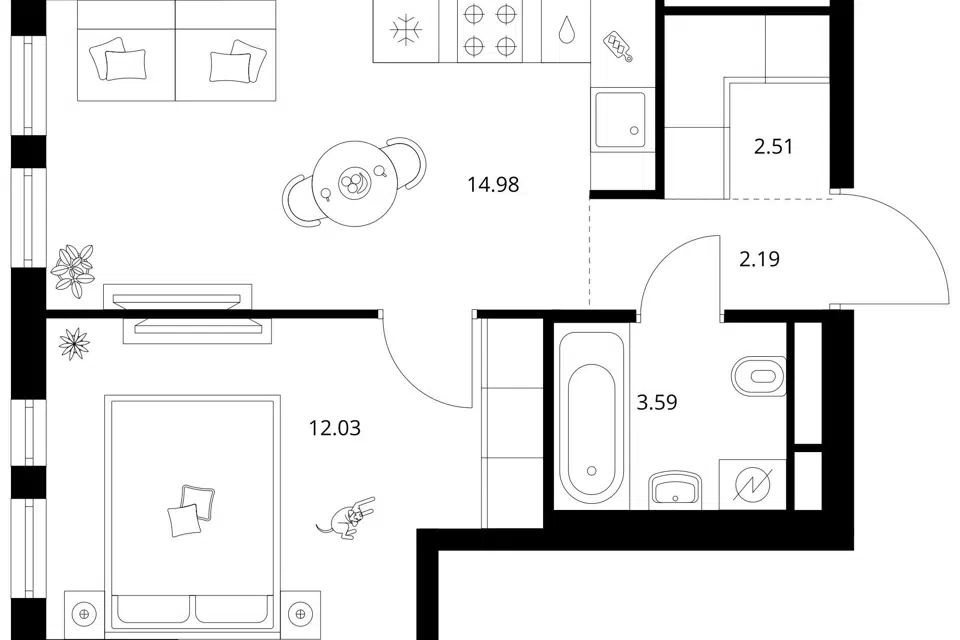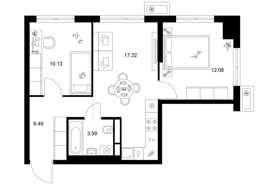 2-комн. кв., 45.77 м², 31/32 этаж