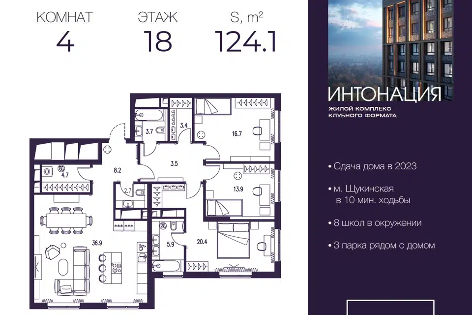 4-комн. кв., от 124.1 м², 20/21 этаж
