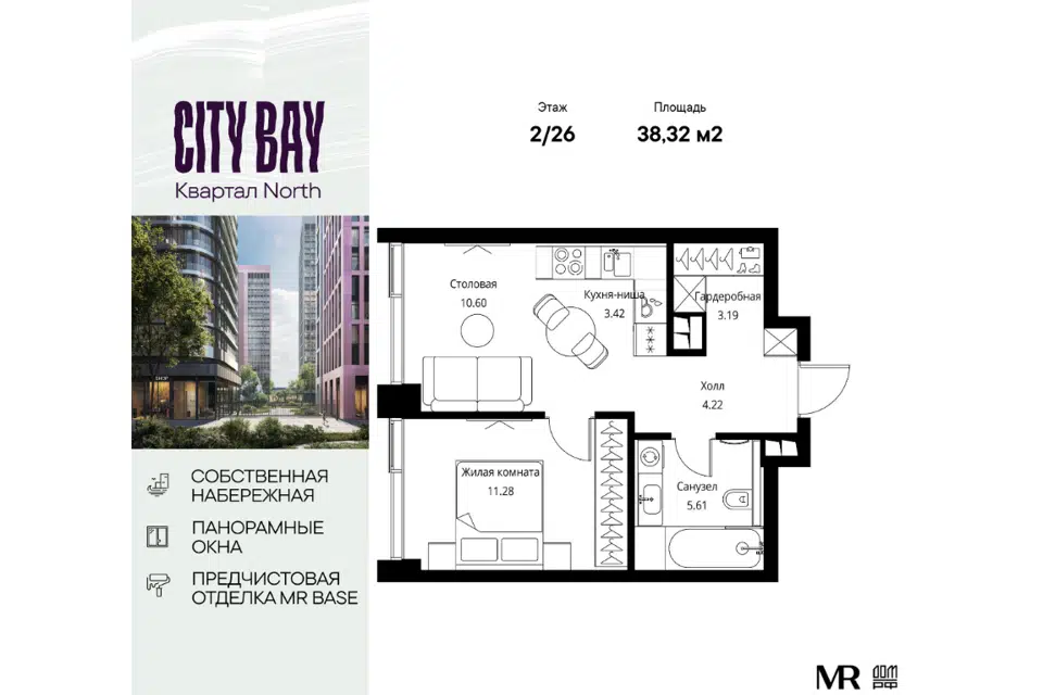 1-комн. кв., от 36.18 м², 2-51 этажи