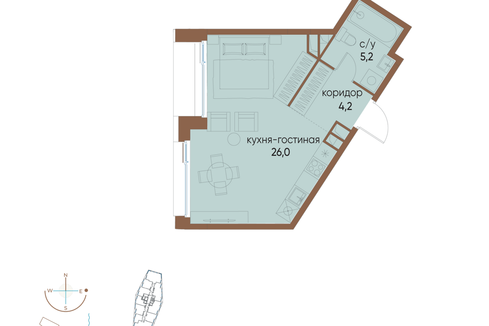 Студия, от 19.7 м², 2-20 этажи