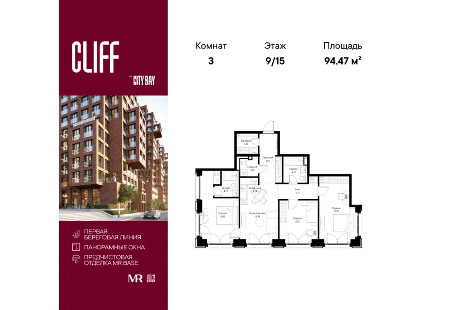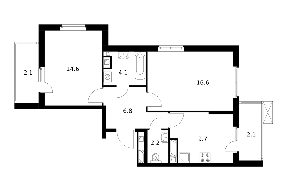 3-комн. кв., 98.9 м², 7/21 этаж