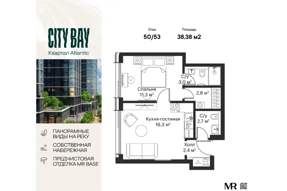 2-комн. кв., от 39.5 м², 2-52 этажи