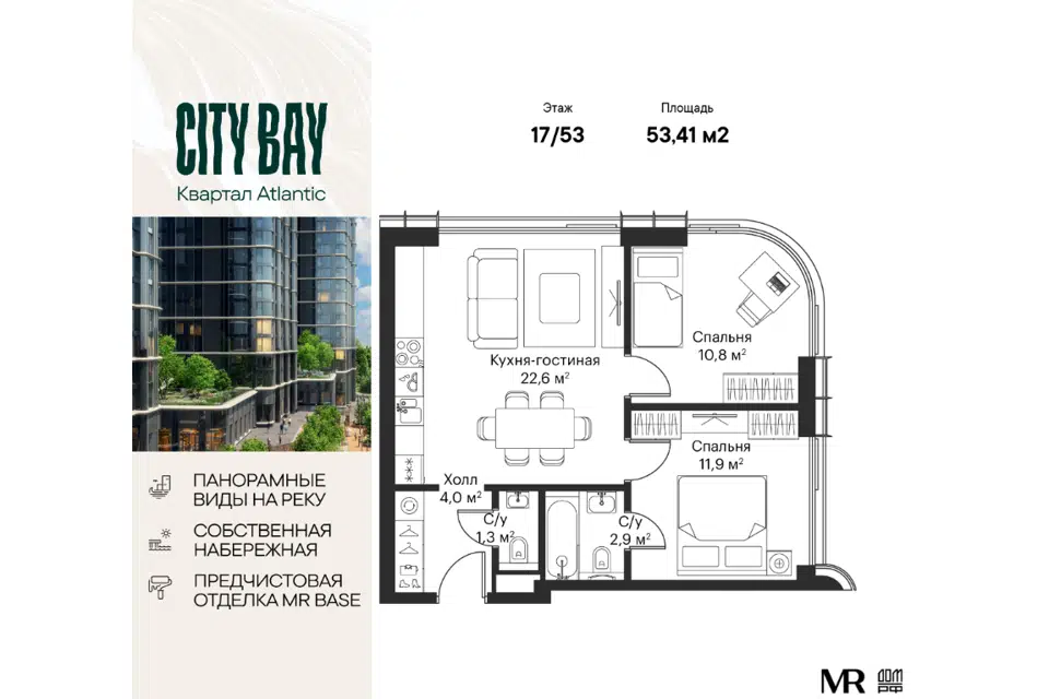 3-комн. кв., от 76.62 м², 2-52 этажи