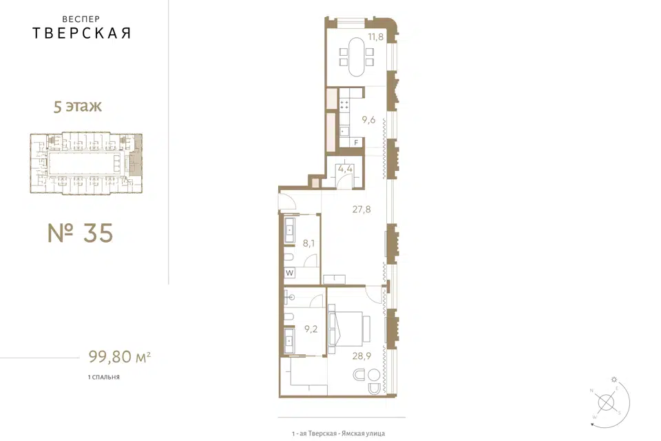 1-комн. кв., от 57.4 м², 2-16 этажи