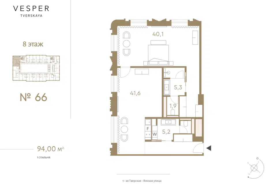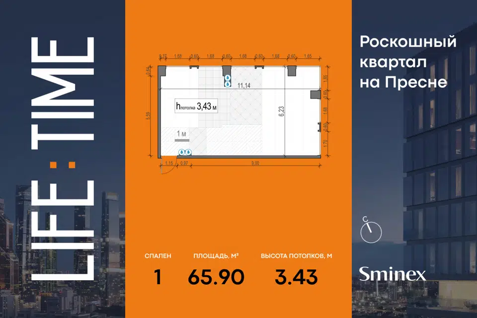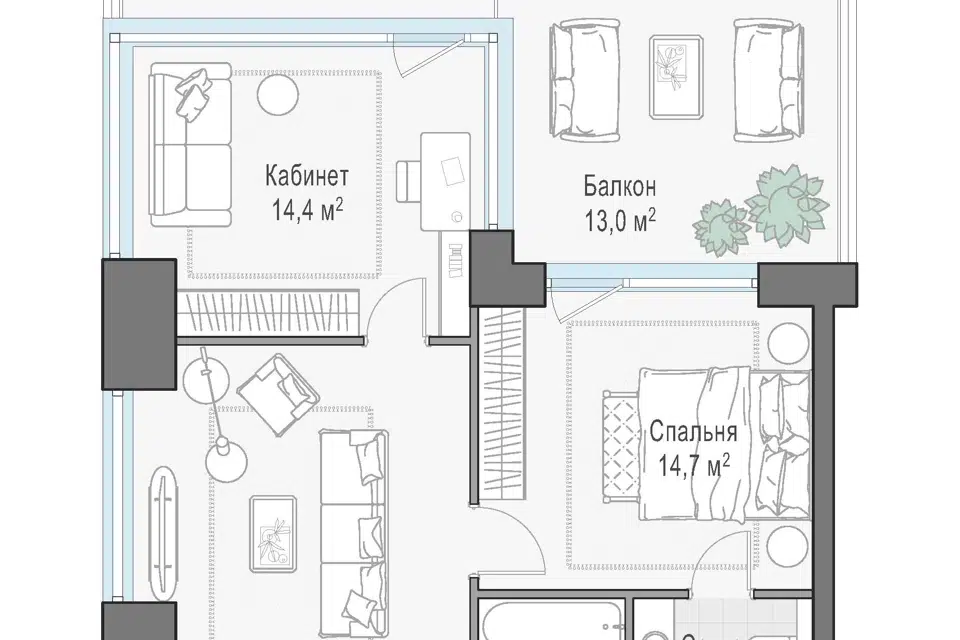 1-комн. кв., от 57.4 м², 2-14 этажи