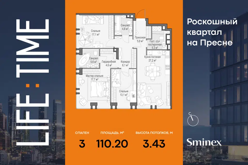 3-комн. кв., от 109.8 м², 12-21 этажи