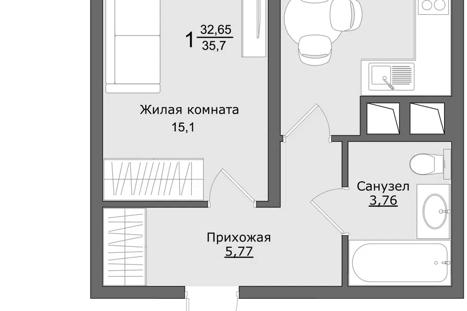 1-комн. кв., от 33.9 м², 4-9 этажи