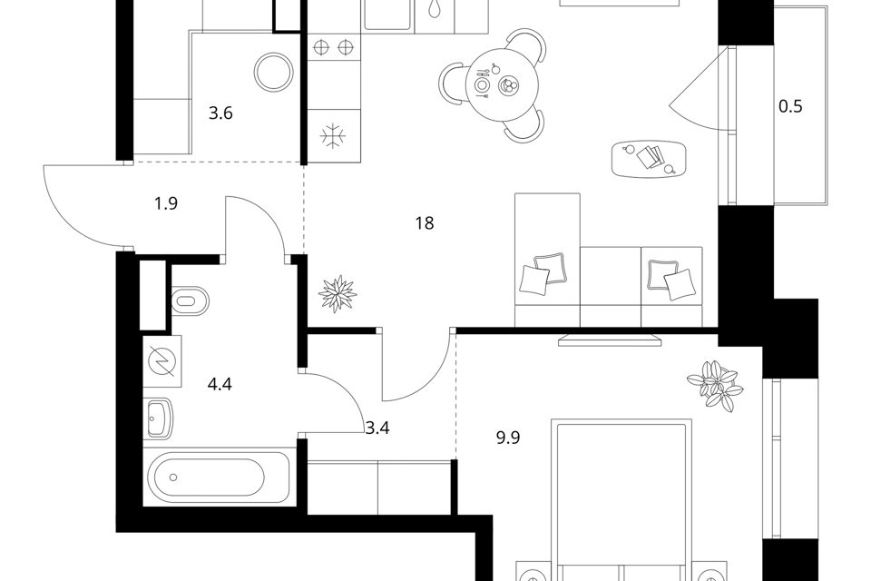1-комн. кв., от 31.9 м², 3-38 этажи