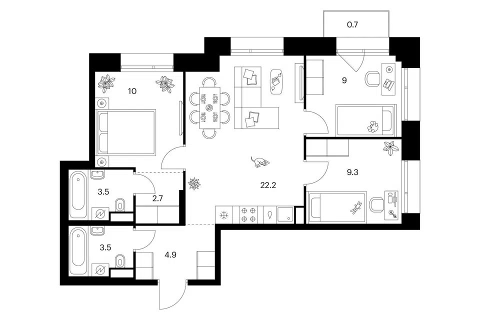 3-комн. кв., от 71.7 м², 22-24 этажи