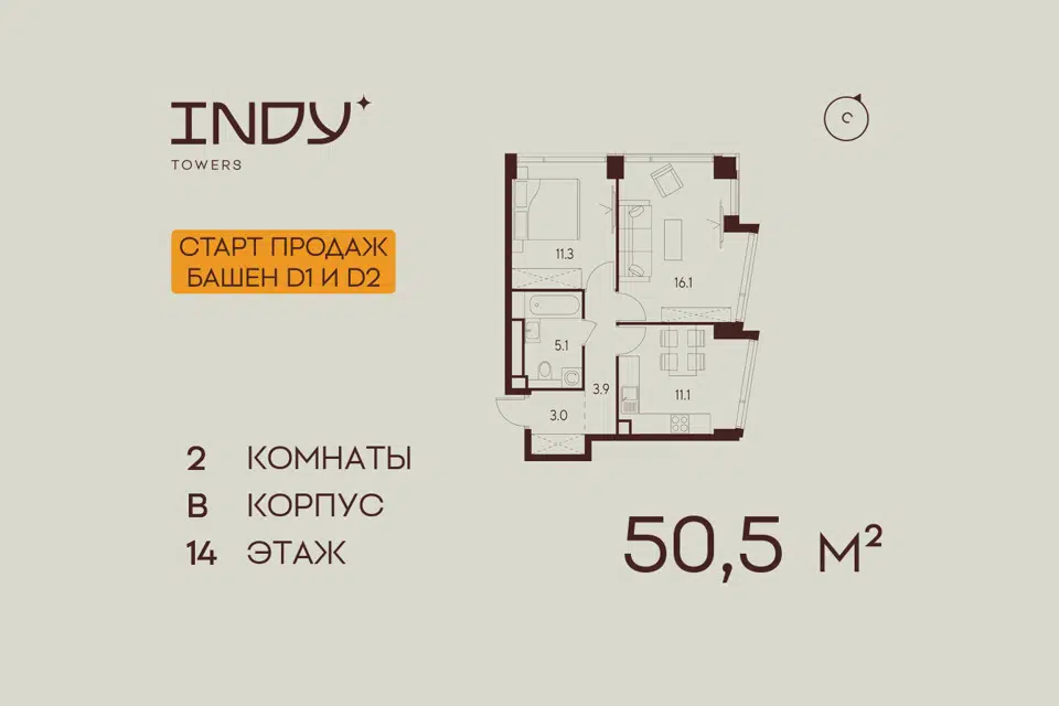 2-комн. кв., от 50.5 м², 9-25 этажи