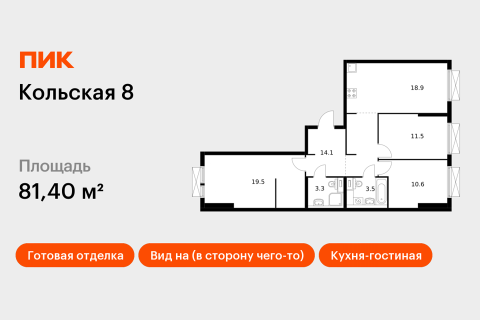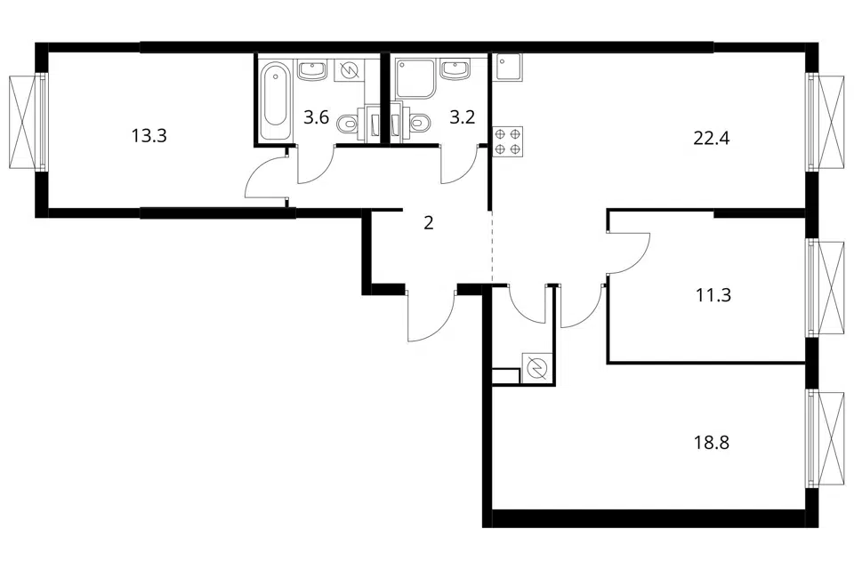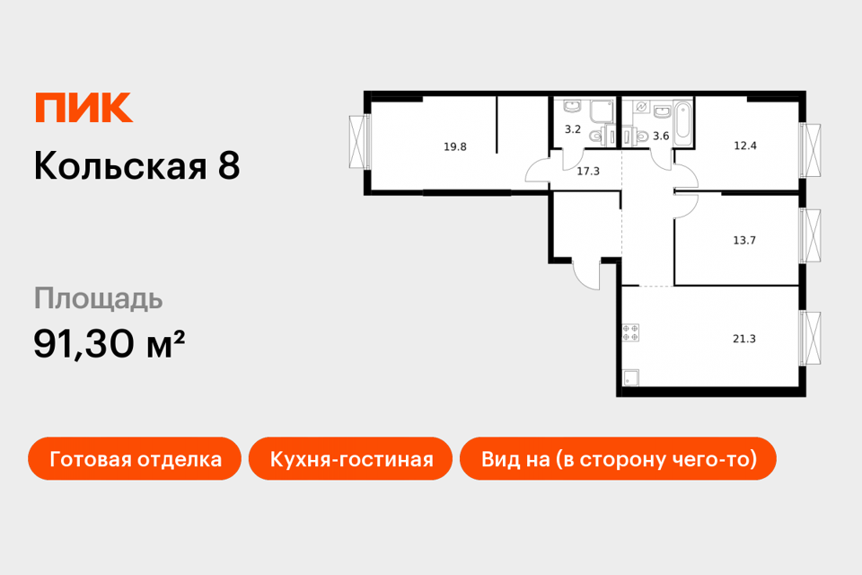 3-комн. кв., от 79.1 м², 2/24 этаж