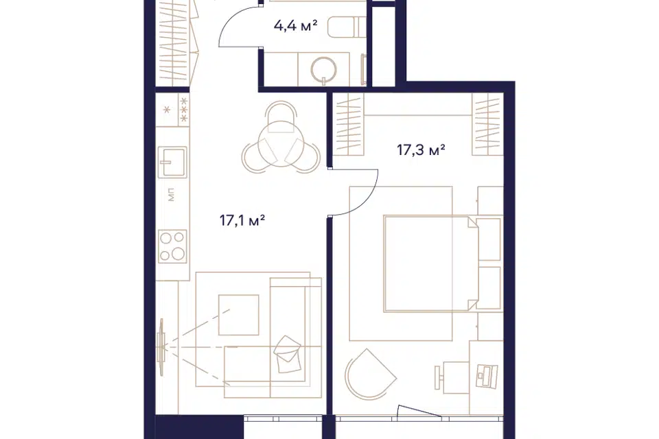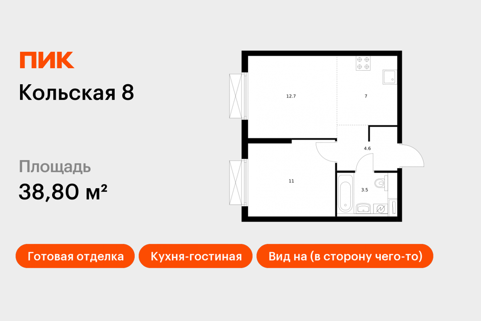 1-комн. кв., от 38.8 м², 10-26 этажи