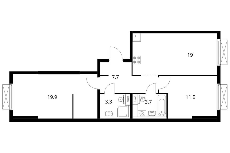 3-комн. кв., от 62.7 м², 9-26 этажи