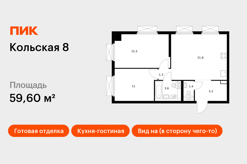 2-комн. кв., от 52.8 м², 8-25 этажи