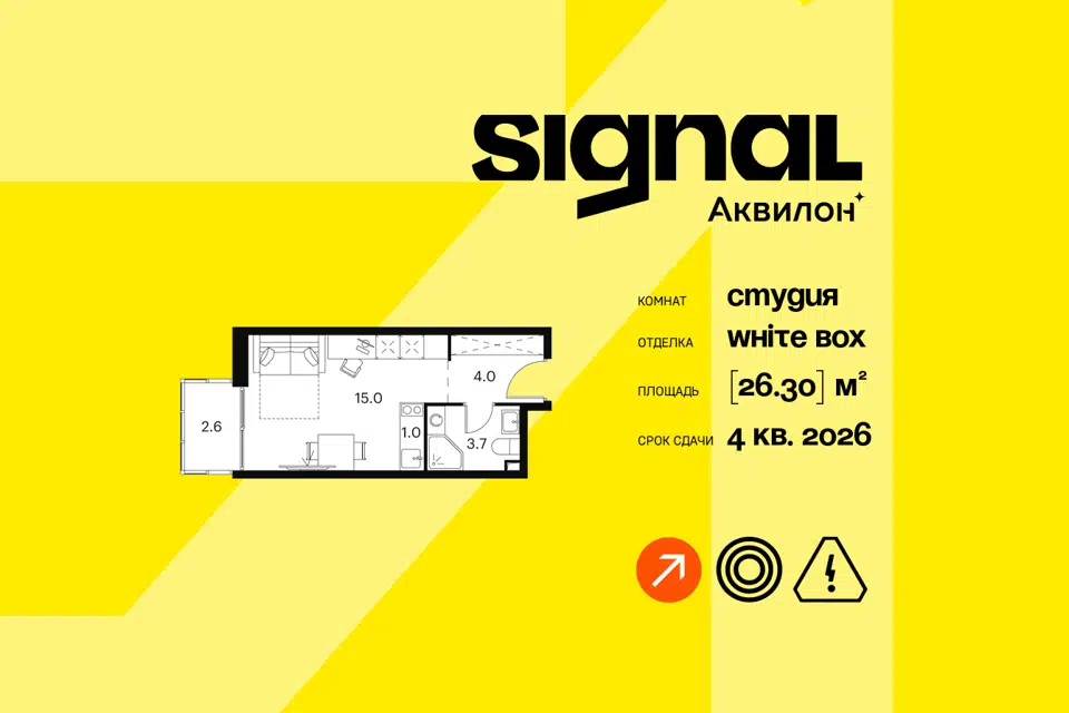 Студия, от 26.1 м², 6-8 этажи