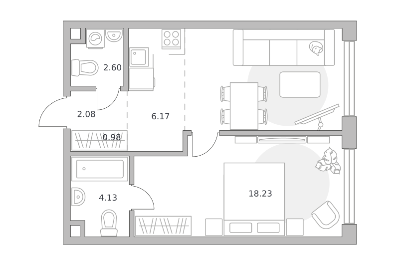 1-комн. кв., от 37.5 м², 2-22 этажи