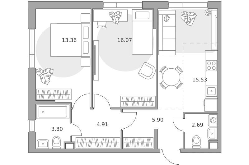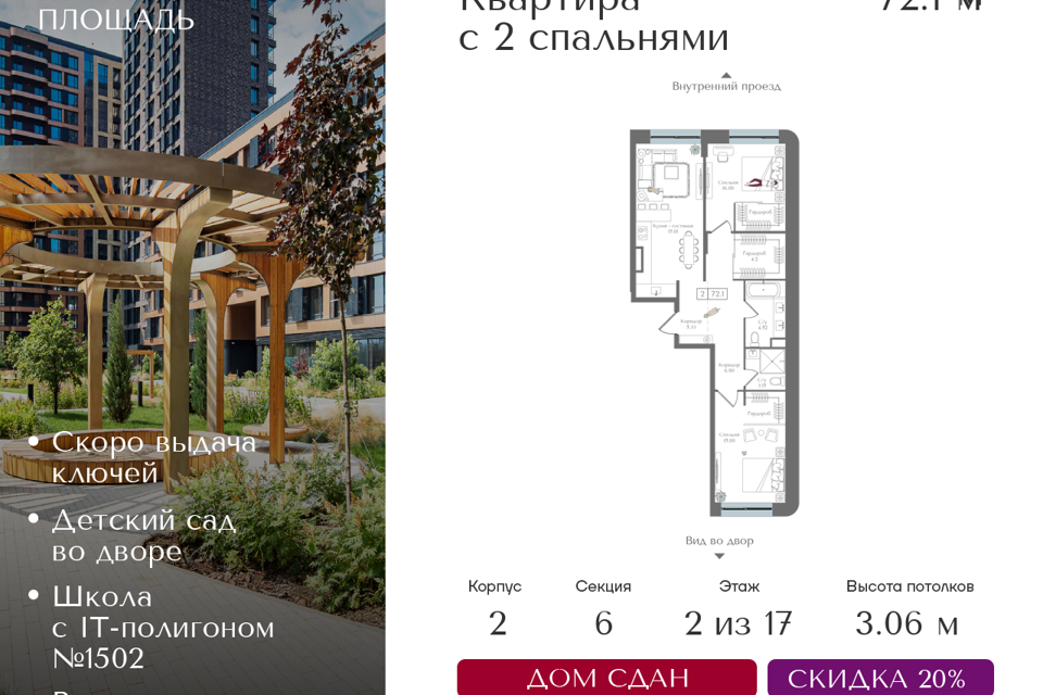 2-комн. кв., от 56.1 м², 3-17 этажи