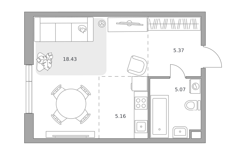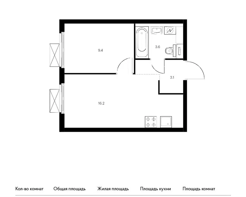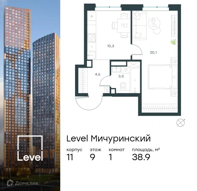 1-комн. кв., от 32.7 м², 4-16 этажи