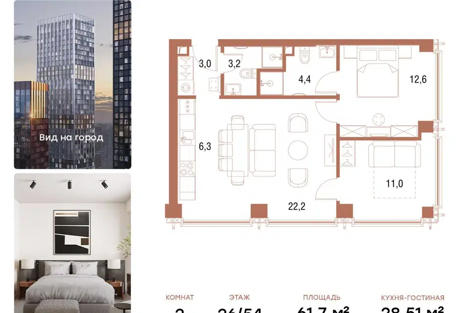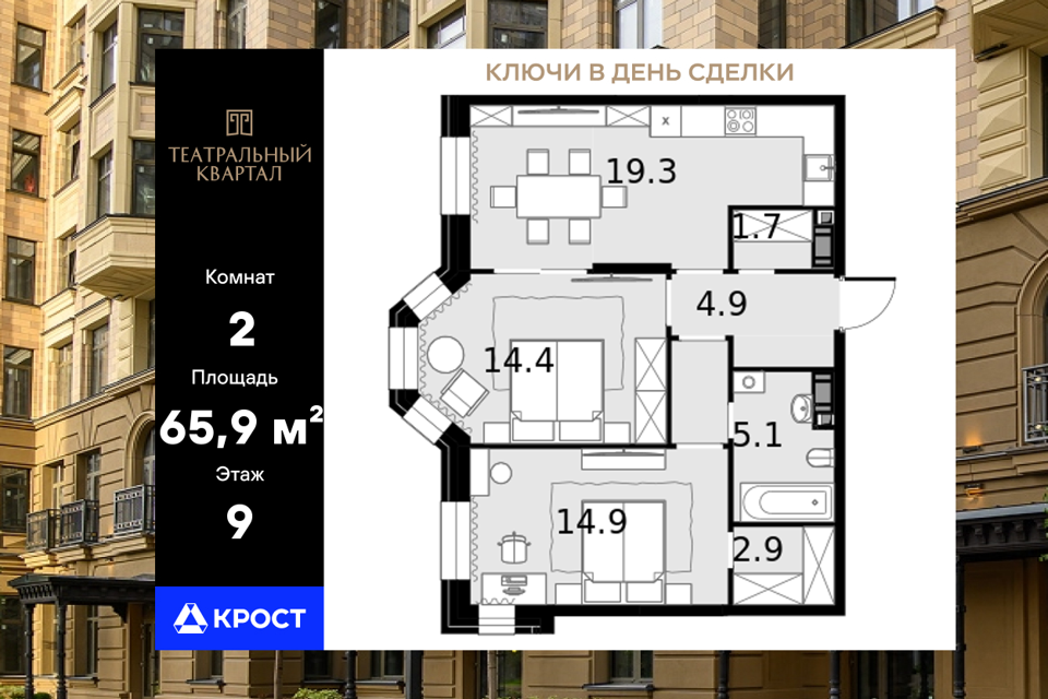 2-комн. кв., от 52.6 м², 14-17 этажи